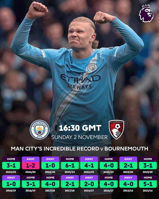 北京時間11月1日,英超官方預(yù)熱了本周末曼城主場對陣伯恩茅斯的聯(lián)賽第10輪比賽,雖然目前藍月亮僅排名第5,而櫻桃軍團高居第2,但兩隊的歷史交鋒卻成一邊倒的趨勢。