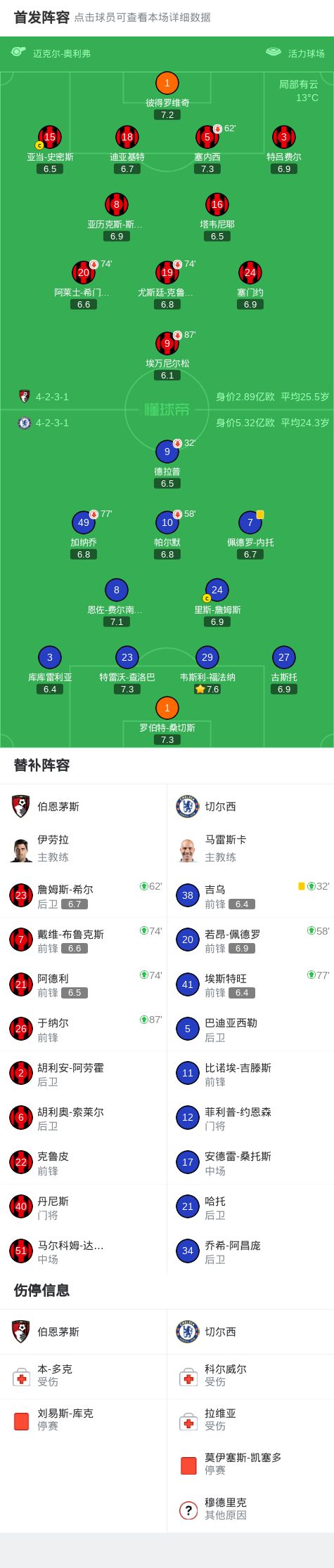 北京時(shí)間12月6日英格蘭足球頂級(jí)聯(lián)賽第15輪,伯恩茅斯主場(chǎng)對(duì)陣切爾西。上半場(chǎng),塞門(mén)約破門(mén),可惜埃萬(wàn)尼爾松越位在先,進(jìn)球無(wú)效。下半場(chǎng),帕爾默、加納喬、內(nèi)托連續(xù)進(jìn)攻,皮球均被彼德羅維奇化解。最終比分伯恩茅斯 0-0 切爾西。